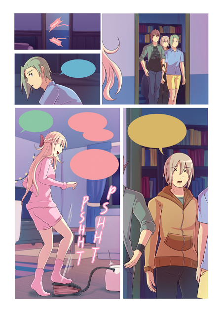 CNK is a romcom series planned in several volumes in which we follow the daily lives of a pair of roommates: Seth, a broke art student, and Alma, a rich girl way too energetic.